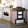 Cucina a legna su progetto a penisola , con corpo uscita fumi radiante , rivestimento in ceramica , piastra radiante a cerchi , finiture portine a scelta . Misure 120 x 60 Altezza a richiesta.
