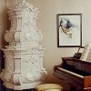 Riproduzione stufa in stile Barocco , altamente lavorata con fregi a rilievo e decorazioni con colori a richiesta , piattaforma in pietra lavorata . Misure 90×90 altezza cm 260.