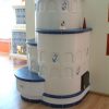 Stufa in maiolica a tre volumi con panca in ceramica di forma arrotondata , rilievo campanula nella muratura .Colori a scelta misure 130 x80 altezza cm 185
