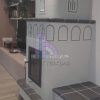 Stufa in maiolica mista con mattonelle fiore decorate e forate. Panca in maiolica.