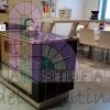 Cucina a legna ad accumulo con forno rivestita in maiolica decorata .