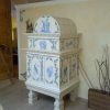 Stufa mod. Sfruz a base circolare misure diamtro 75 cm con torretta circolare , Colore a richiesta verde o celeste con colature bianche , pioattaforma a richiesta in pietra o in legno. altezza cm 240.