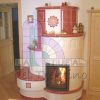 Stufa a piu volumi circolare colore a decorazione a scelta. misure 120 x70 altezza cm 185 . Portina fuoco a vista.