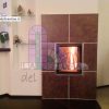 Stufa in maiolica a parete con porta fuoco a vista. Colori a scelta .